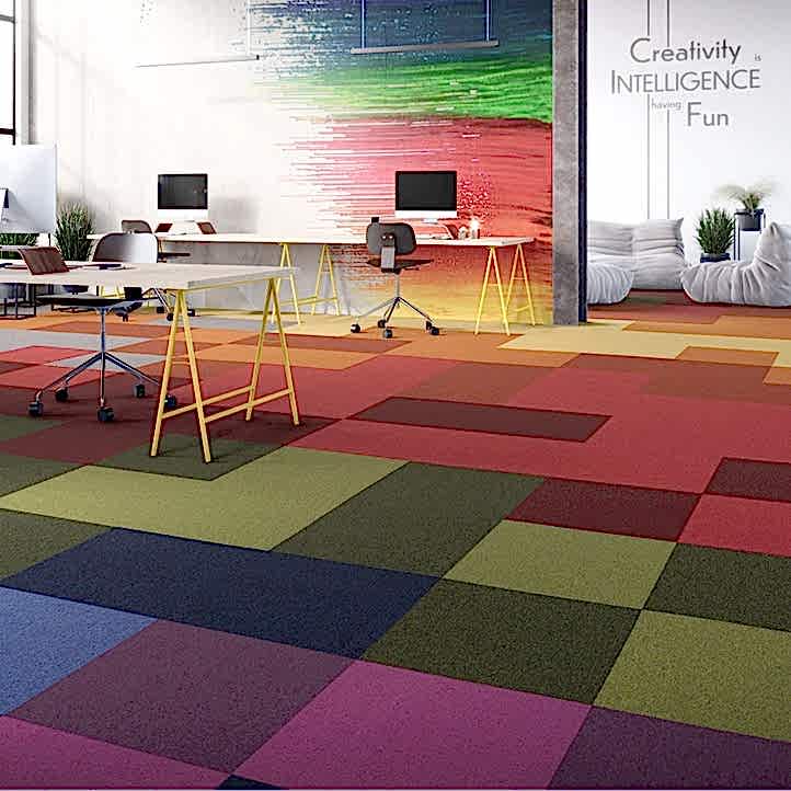 Canlı tonlar, toprak tonlarındaki organik renkler ve çok yönlü kullanışlı renklerle Creative Spark, günümüz ticari iç mekanlarının farklı ruh hallerine cevap vermeye, bireysellik ve uyum getirmeye hazır. IVC Art Intervention Creative Spark 543 Karo Halı